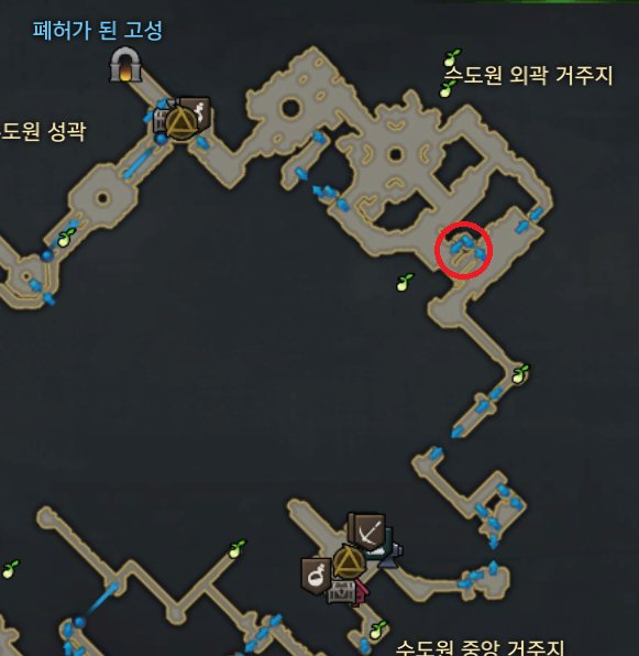 페이튼 돌발퀘스트 자리로 이동하면서 가장 귀찮았던 곳이 바로 이 돌발 퀘스트 지역이었습니다. 아래 수도원 중앙 거주지 쪽 스퀘어홀을 타고 가서, 표시된 위치에서 G키로 상호작용하여 해당 작은 구역으로 올라가게 되면 발생되는 돌발 퀘스트입니다.